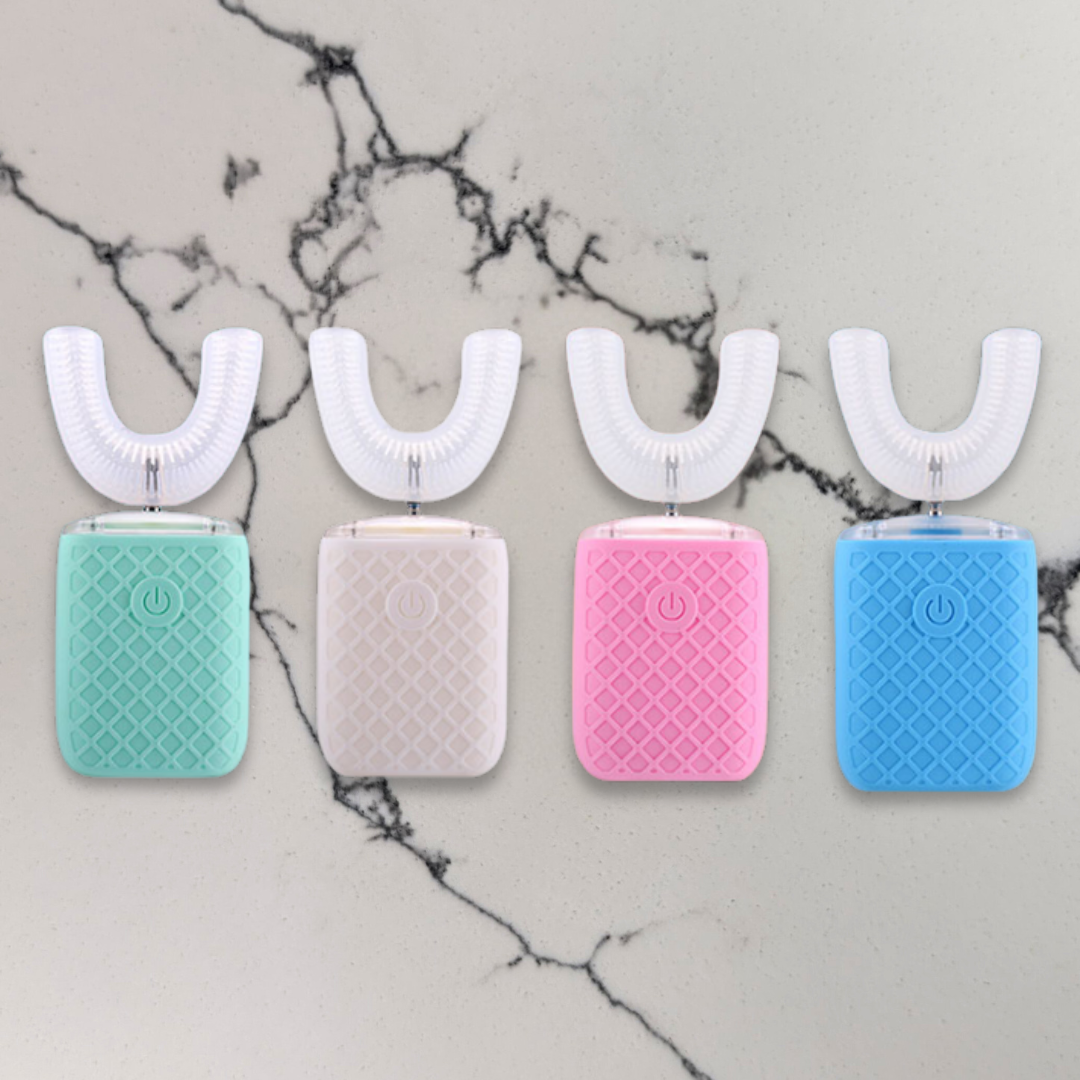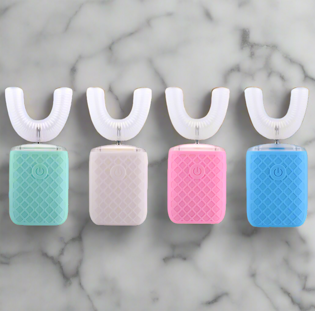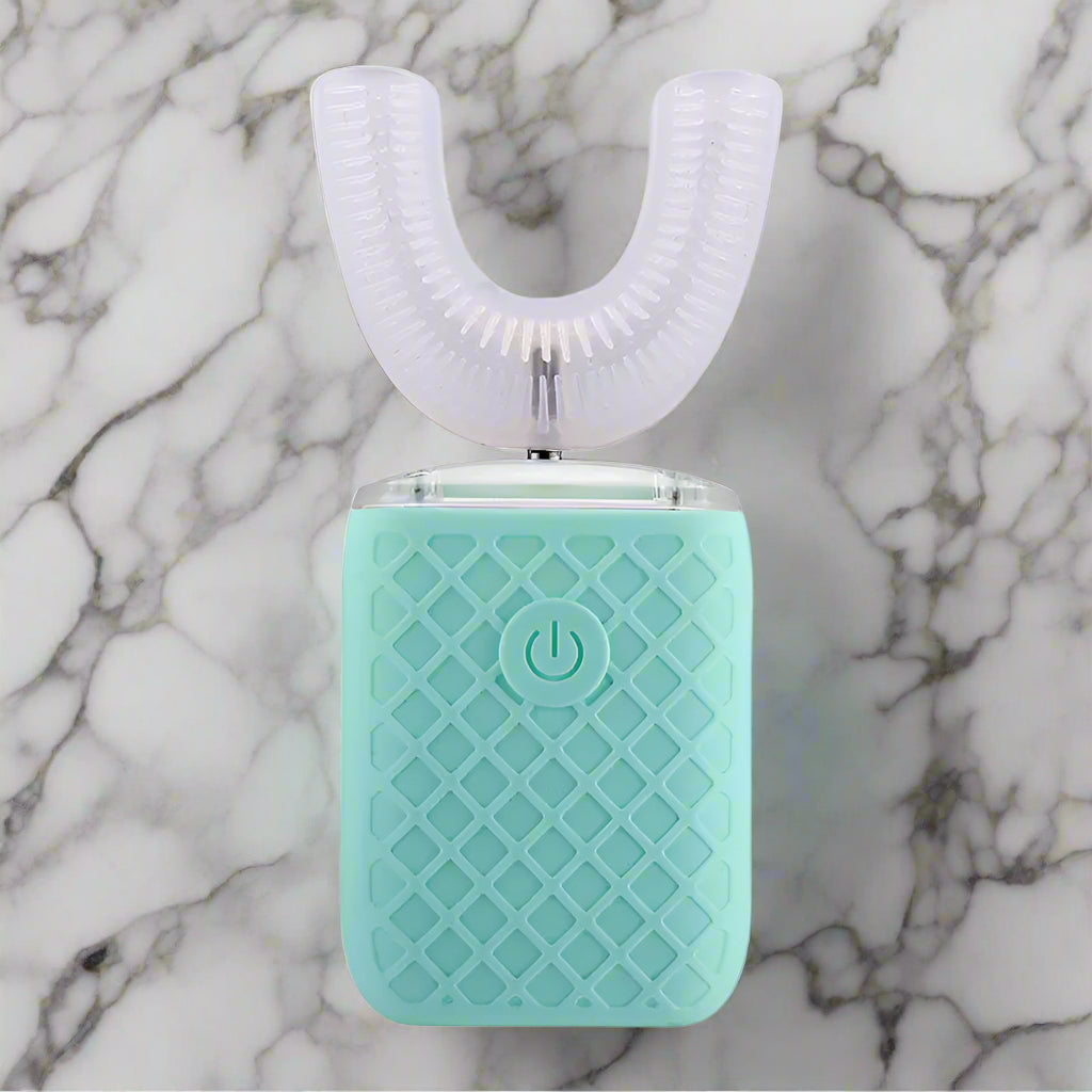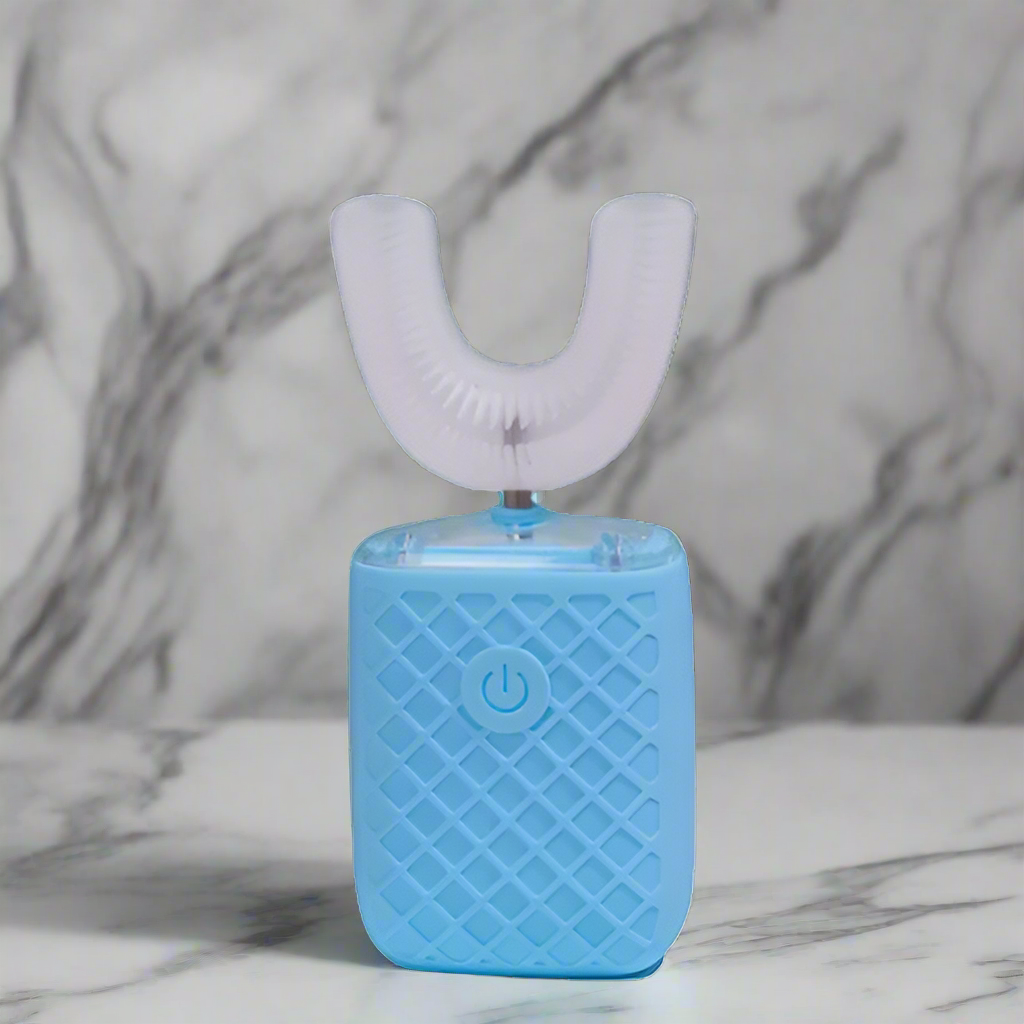 The E-Brush for kids makes brushing fun and easy! It charges quickly with USB in under two hours and lasts over a week. Its colorful rainbow design lights up blue for extra sparkle. With over 800 soft bristles and a smart U-shaped design, it cleans gently and thoroughly, keeping little gums happy. Plus, it gently disinfects while charging for extra safety.