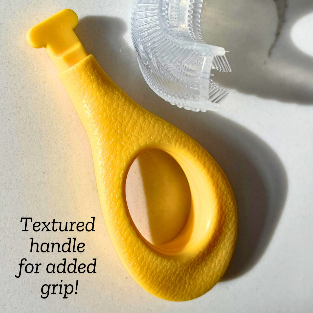 - Comfortable Grip: The handle is designed to provide a comfortable and secure grip. Parents able to brush with child guiding them to independence.